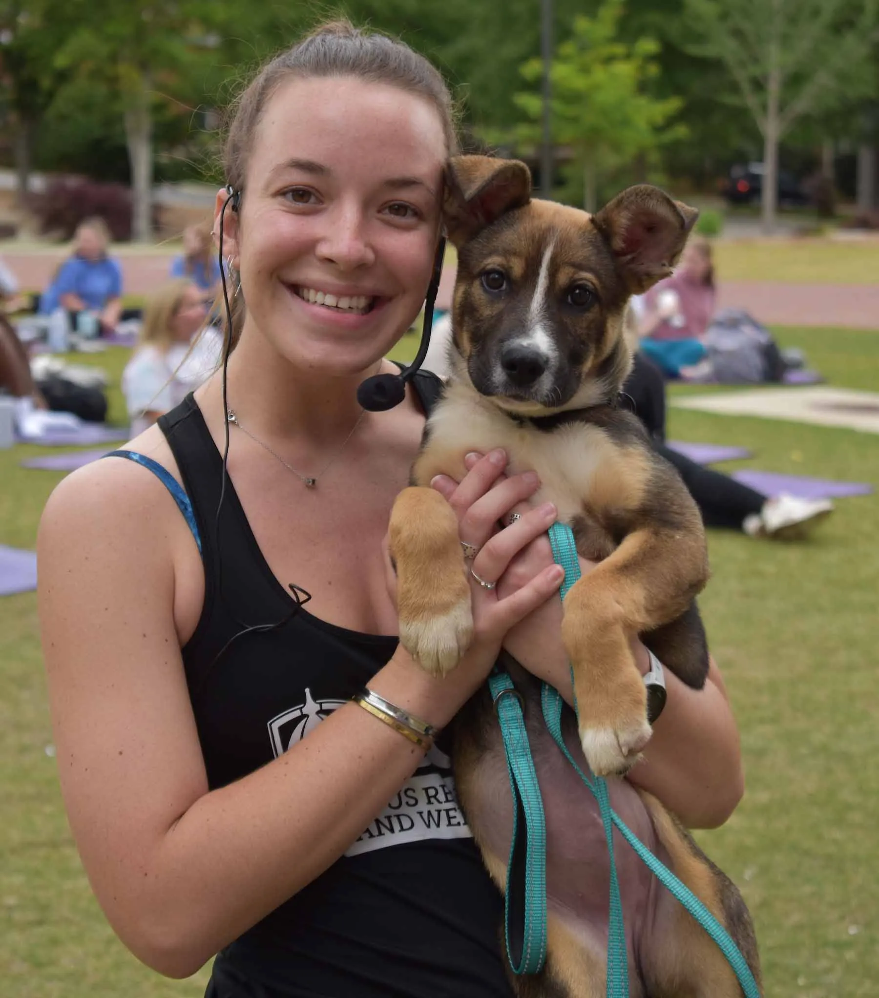 Partnerships are another way we create memorable movement experiences. Collaborating with the Humane Society we have an annual ‘puppies and poses’ event where 300+ students work out to destress and provide donations for animal shelters. Bringing a sense of purpose to the movement really resonates with the students.