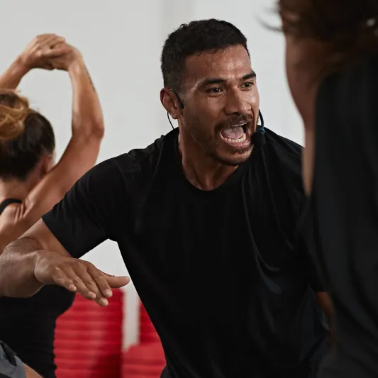 É útil experimentar o treino antes de ensiná-lo para que você possa: (a) criar memória muscular para os movimentos; (b) entender onde estão os momentos de intensidade – isso ajudará seu coaching; (c) praticar quaisquer novos movimentos antes de demonstrá-los em sala. Fazer o treino com uma mentalidade de participante ajudará você a treinar sua classe para tirar o máximo proveito do treino. Por exemplo, se o Squat Track no BODYPUMP™ tiver aumentos de panturrilha em um ritmo mais rápido, experimentar isso por si mesmo ajudará você a aconselhar os membros sobre a seleção de peso. Ou se houver um desafio de repetições em LES MILLS GRIT™, tentar você mesmo significa que você pode sugerir maneiras diferentes de quebrar os blocos para sua aula (se houver 50 repetições – você sugeriria que eles as fizessem ininterruptas ou quebrá-las em partes gerenciáveis ?).