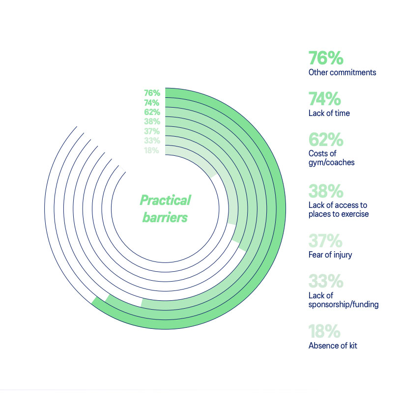 The recent Asics report into the gender exercise gap found that women face multiple barriers to exercise, including lack of time (74%) and inability to fit training in around competing commitments (76%).