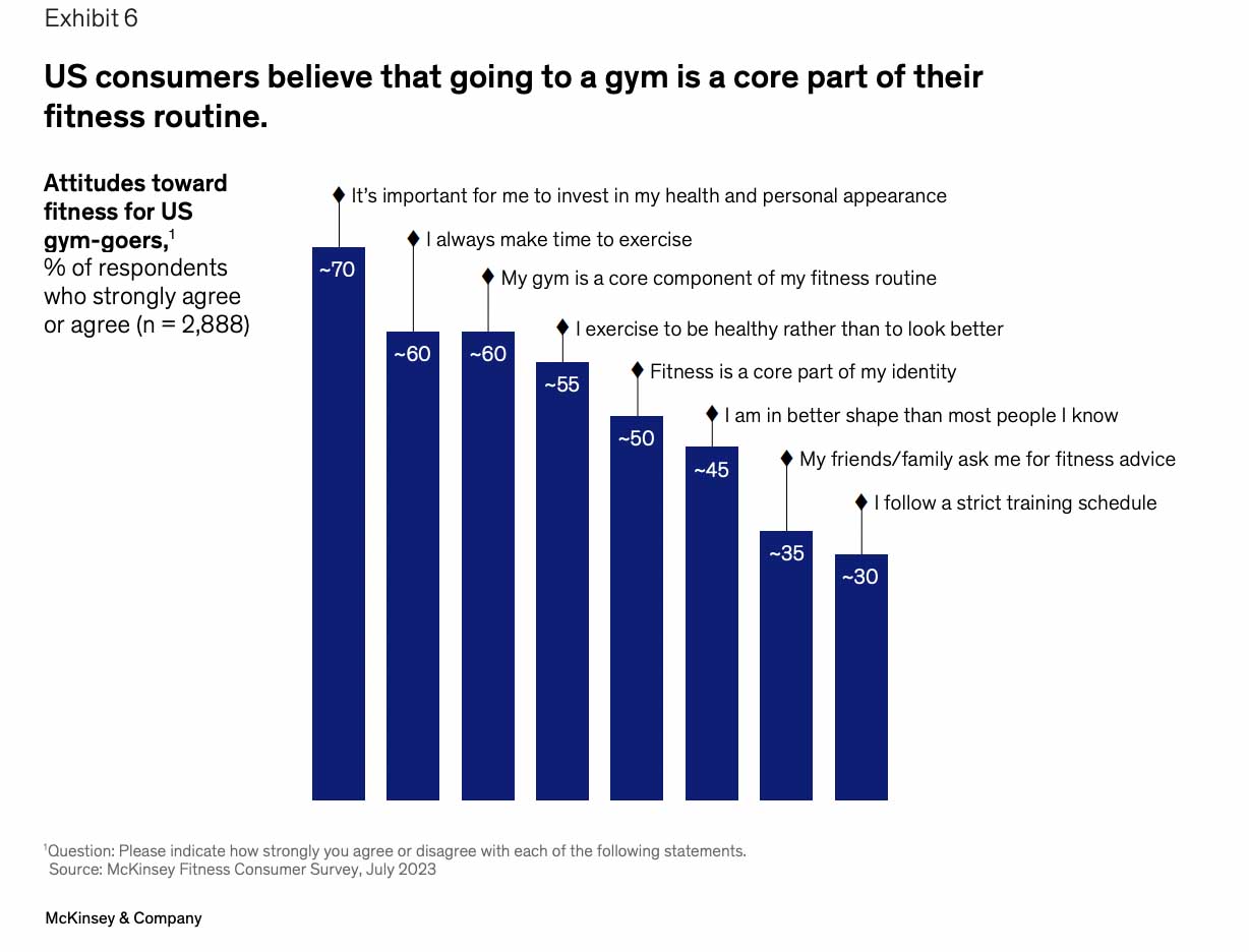 Across all ages, McKinsey found 50% of US gymgoers believe fitness is now ‘a core part of their identity’. Meanwhile, in-person fitness classes and personal training were the top two areas where consumers expected to spend more on fitness, highlighting demand for in-person experiences that drive motivation and accountability.