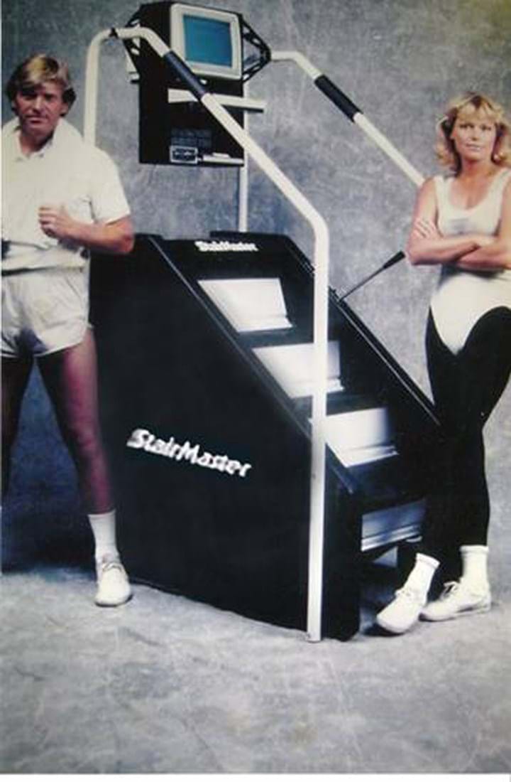 The very first stair-climbing machine, then referred to as a treadmill, was created by an English engineer William Cubitt in 1817. These early stair-climbing devices were introduced to torture prisoners by engaging them in intense exercise while concurrently starving them. These early stair-climbing machines were called treadmills, but when you see images of them it quickly brings to mind the first Stairmaster, which used a revolving stair. Beyond these rudimentary torture machines, the first official stair-climbing machine was introduced in 1984 with the launch of The StairMaster 5000 designed by Lanny Potts, one of the three co-founders of StairMaster Exercise Systems. The first Stairmaster 5000 featured rotating stairs. Two years later, in 1986, Randall Sports/Medical, formerly StairMaster, introduced the StairMaster 4000 PT mechanical stair stepper. The 4000 PT went on to become the single most popular piece of cardiovascular equipment in the 1980s and early 1990s. Over the past five years, stair-climbing machines have made a comeback of sorts, with new versions being made by multiple industry vendors.